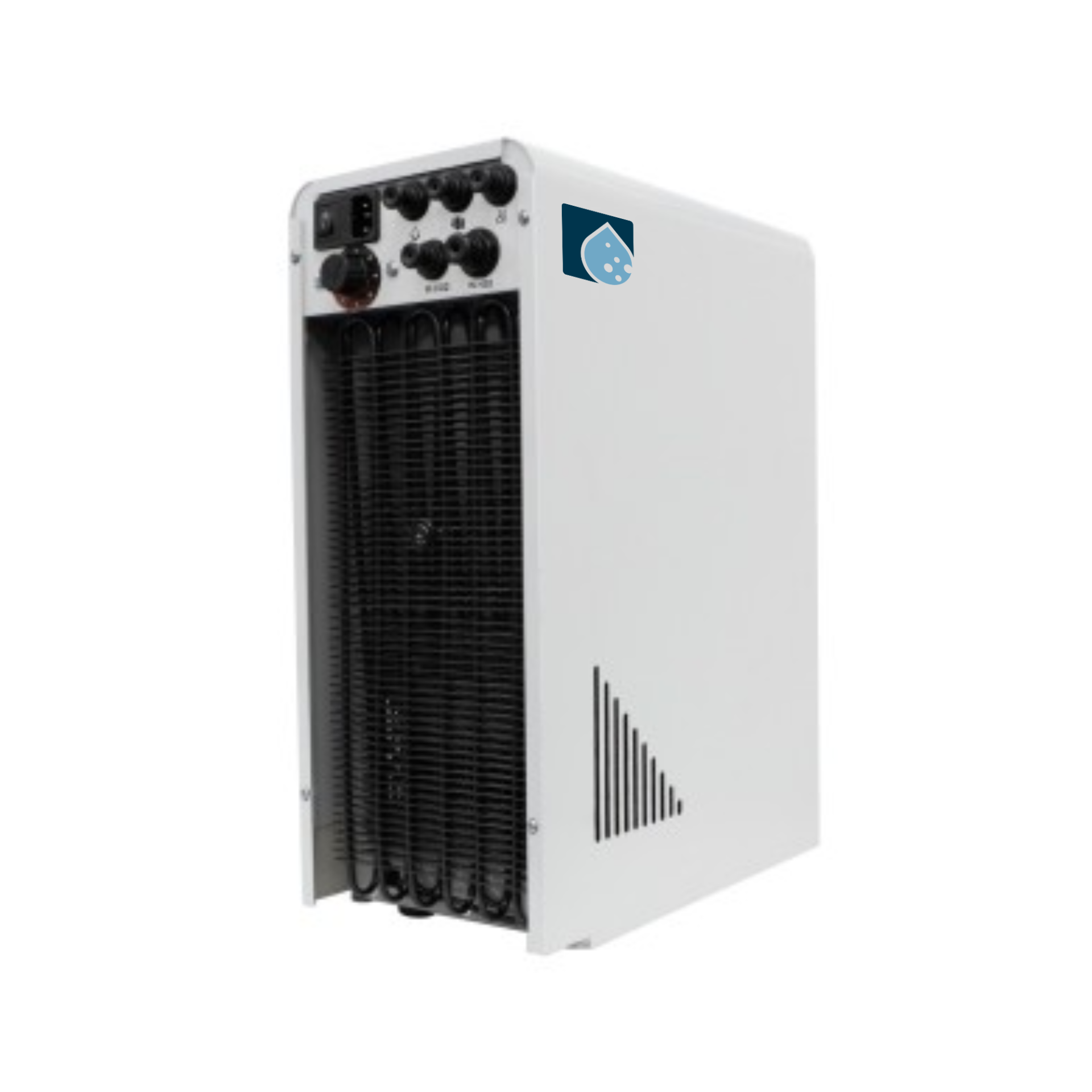 Dotato di raffreddamento a secco, scambiatore con volano termico, circuito frigorifero statico e saturatore in acciaio inox 316 da 2,2 litri,